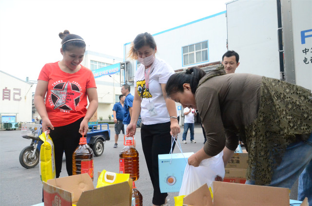 日前,在傳統(tǒng)的中秋佳節(jié)來臨前夕,公司為員工準(zhǔn)備了花生油、小米、月餅等節(jié)日慰問品,以體現(xiàn)對(duì)員工傾情奉獻(xiàn)企業(yè)發(fā)展的慰問與關(guān)愛。圖為員工領(lǐng)取節(jié)日慰問品的情形。