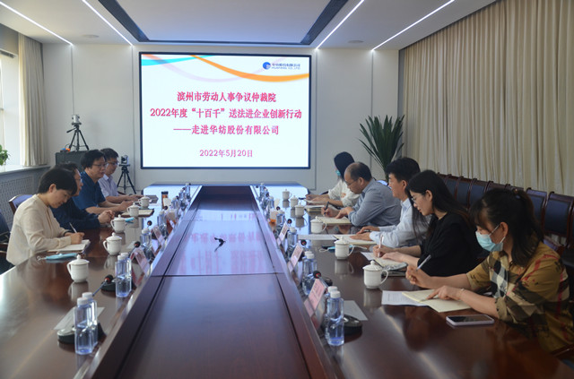 市勞動人事爭議仲裁院副院長翟瑞民、勞宏偉,調(diào)解仲裁二庭庭長孫靜,四級主任科員畢延軍等“送法服務(wù)隊”一行,在公司副總經(jīng)理趙玉忠、孫玉濤等陪同下,參觀了檢測中心、綜合辦公區(qū)、面料展廳、花布展廳、家紡展廳、創(chuàng)意設(shè)計中心、工程技術(shù)研究院等區(qū)域。雙方圍繞新形勢下構(gòu)建和諧勞動關(guān)系、推動企業(yè)整體發(fā)展等內(nèi)容,進(jìn)行了深入交流與座談。