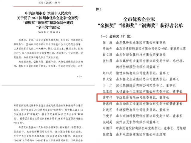 據(jù)了解,這是公司連續(xù)五次榮獲濱州市優(yōu)秀企業(yè)家“金獅獎(jiǎng)”榮譽(yù),作為濱州市五大千億級產(chǎn)業(yè)集群中智能紡織板塊的重要組成部分,公司積極打造“數(shù)字華紡”,完成智能綠色工廠項(xiàng)目,改變了傳統(tǒng)的管理思維定式,為傳統(tǒng)產(chǎn)業(yè)通過現(xiàn)代科技手段改造獲得有益的嘗試與探索,成為行業(yè)智能化印染工廠新標(biāo)桿;在市場方面,公司積極擴(kuò)大國外市場,開拓國內(nèi)市場,把握國內(nèi)國際最新市場動(dòng)態(tài),優(yōu)化產(chǎn)品結(jié)構(gòu),準(zhǔn)確市場定位,提高產(chǎn)品市場競爭力,實(shí)現(xiàn)國內(nèi)國外雙循環(huán);在技術(shù)創(chuàng)新方面,以“做好自己的事情”為前提,不遺余力地推動(dòng)公司科技進(jìn)步與創(chuàng)新,堅(jiān)持依靠科技創(chuàng)新提升企業(yè)的核心競爭力,持續(xù)做好新技術(shù)、新工藝、新產(chǎn)品的研究和應(yīng)用,充分發(fā)揮“八大科研平臺”作用,不斷形成新理論、新工藝,增強(qiáng)持續(xù)創(chuàng)新的能力。