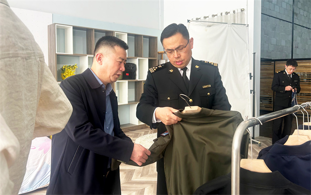 4月16日,濱州海關(guān)黨委書記、關(guān)長李光一行來公司參觀調(diào)研。濱州海關(guān)綜合業(yè)務(wù)一科科長劉金輝,綜合業(yè)務(wù)二科副科長朱士帥陪同調(diào)研。公司黨委委員、總經(jīng)理閆英山,市場運營部綜合事務(wù)管理主任楊霞,華紡國際進口部經(jīng)理韓黎明,服裝面料業(yè)務(wù)經(jīng)理王新東,儲運部主管楊箐箐陪同。