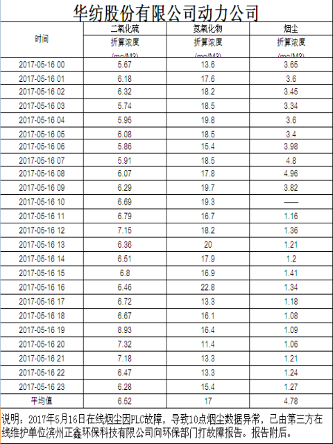 煙氣排放數(shù)據(jù)信息公開2017.5.16數(shù)據(jù)