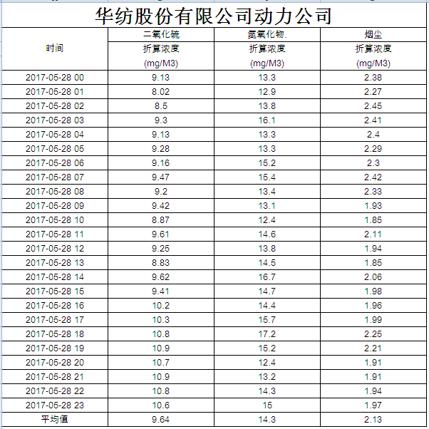 煙氣排放數(shù)據(jù)信息公開2017.5.28數(shù)據(jù)