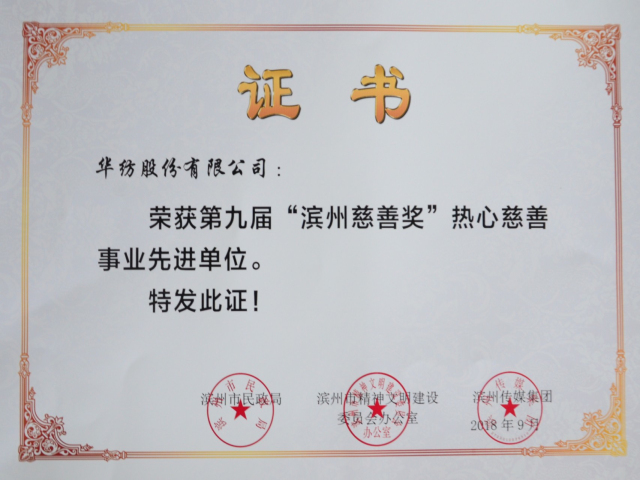 公司榮獲“熱心慈善事業(yè)先進單位”榮譽稱號